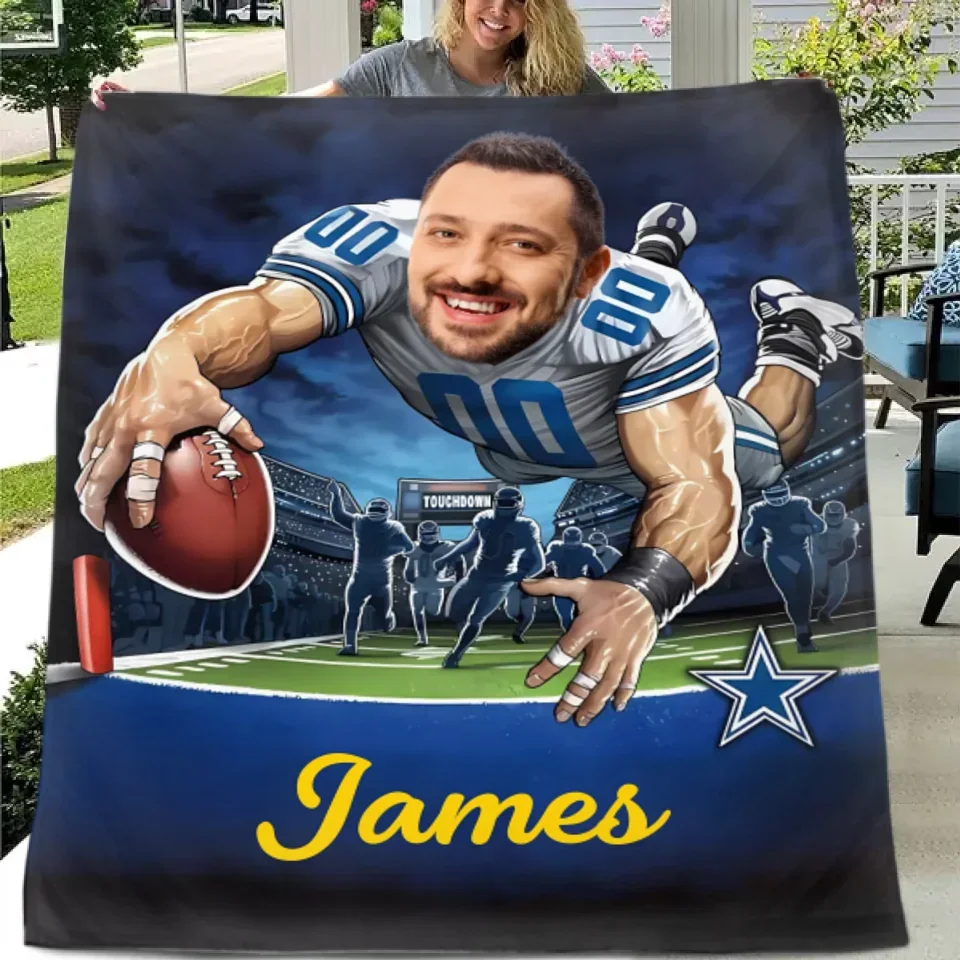 Available Product: Customised Football Themed Blankets - Personalised Photo and Name Footballer Blankets - A Gift For Father,Football Players,Football Lovers