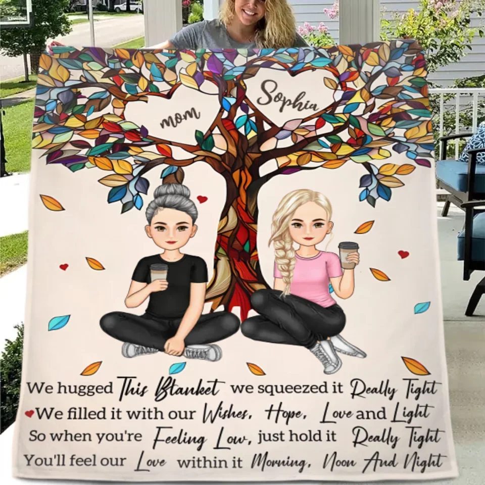 Available Product: Customized Blankets for Moms and Kids - Personalized Character Cartoon Image and Name Love Tree Blanket - A Gift For Friend,Mom,Children